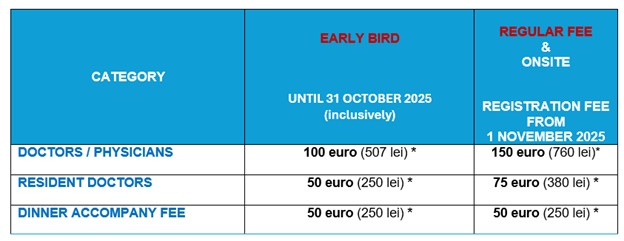 - The participation fee does not include value added tax (VAT) and is paid in Lei exclusively through the online payment platform.